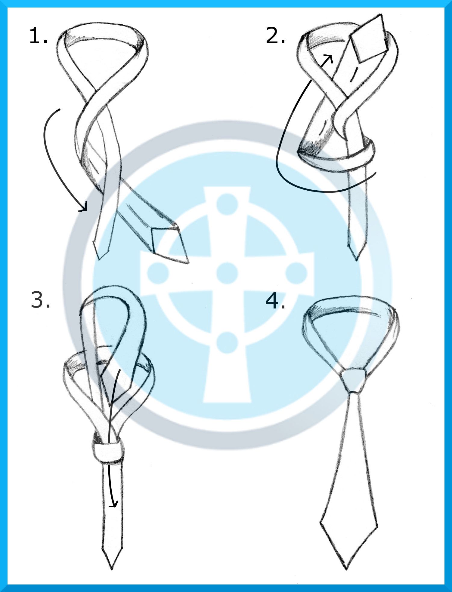 - Cross the front of the tie over the tail, then underneath it in the opposite direction.